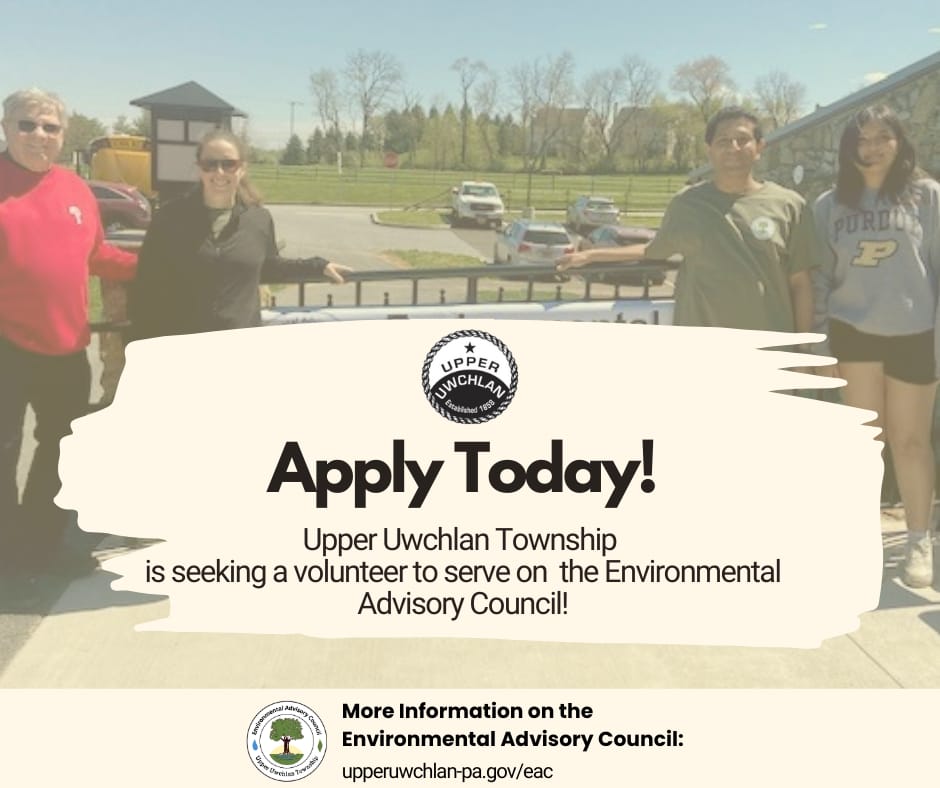 UPPER UWCHLAN TWP — Upper Uwchlan Township is seeking a volunteer to join its Environmental Advisory Council. Residents with an interest in environmental issues, ecology, or preservation are encouraged to apply. Applications can be submitted by mail or in person at the township office.