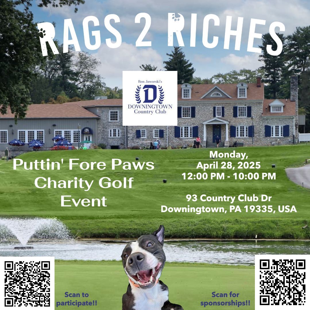 DOWNINGTOWN, PA — Golf enthusiasts and animal advocates will have the chance to come together for a day of sport and philanthropy at Puttin’ Fore Paws, a charity golf event hosted at the Downingtown Country Club. The outing, benefiting Rags 2 Riches Animal Rescue, promises a full agenda of activities designed to entertain while raising funds for animal care.