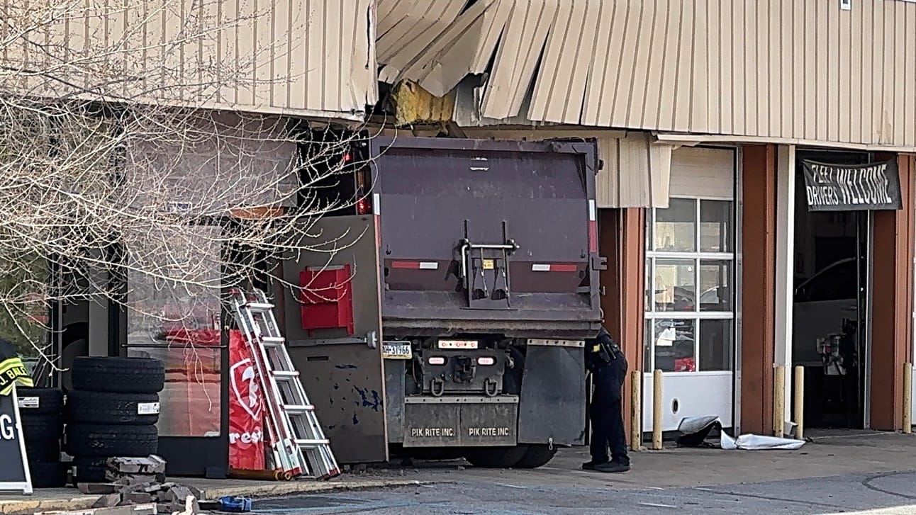 🚨 Dump Truck Plows Into East Goshen Tire Shop