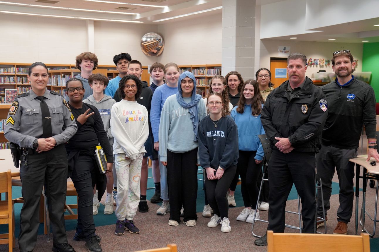 DOWNINGTOWN, PA — Students at Downingtown Middle School participated in the district’s “Making Connections” program, an initiative aimed at fostering mutual understanding between youth and law enforcement. Officers from the Pennsylvania State Police and West Brandywine Police Department joined the discussion to talk about their roles and online safety, providing students with an open space to ask questions and reflect.