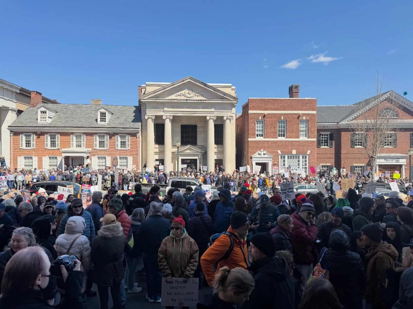 WEST CHESTER, PA — Thousands gathered at the Historic Courthouse in West Chester on Saturday for No Kings 3, a peaceful rally opposing Trump administration policies. Organized by Chester County Indivisible, the event was distinctive in handing the podium almost entirely to high school students, who spoke on immigration, women's rights, arts funding, and civic responsibility. Chester County Commissioners Chair Josh Maxwell emceed, framing his role as a listener rather than a leader. It was one of four demonstrations held across Chester County that day.