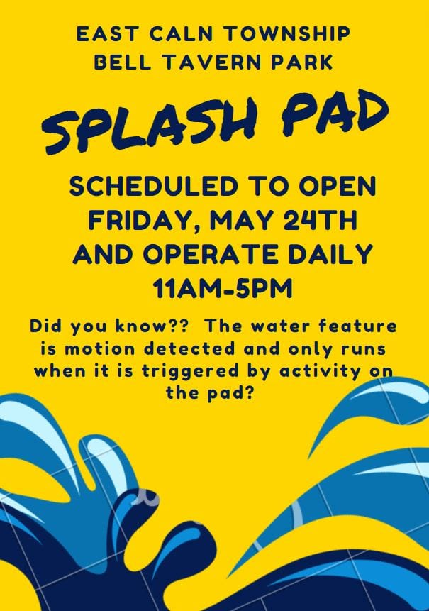 EAST CALN, PA — East Caln Township Bell Tavern Park Splash pad has opened ahead of schedule, providing a cool retreat for residents. Initially set to open on Friday, the splash pad is now ready for visitors.
