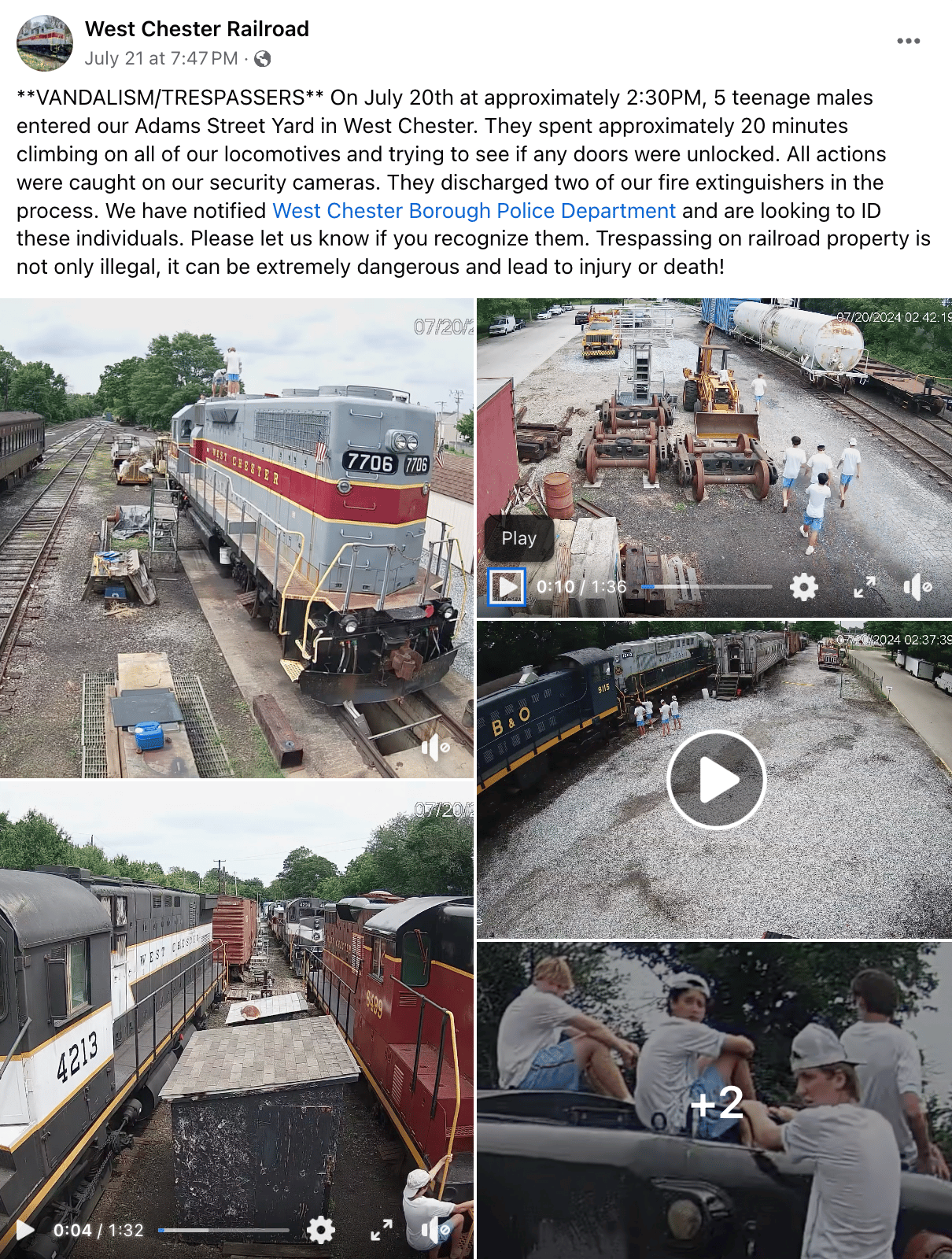 🛤️ Trespass and Vandalism at West Chester Railroad