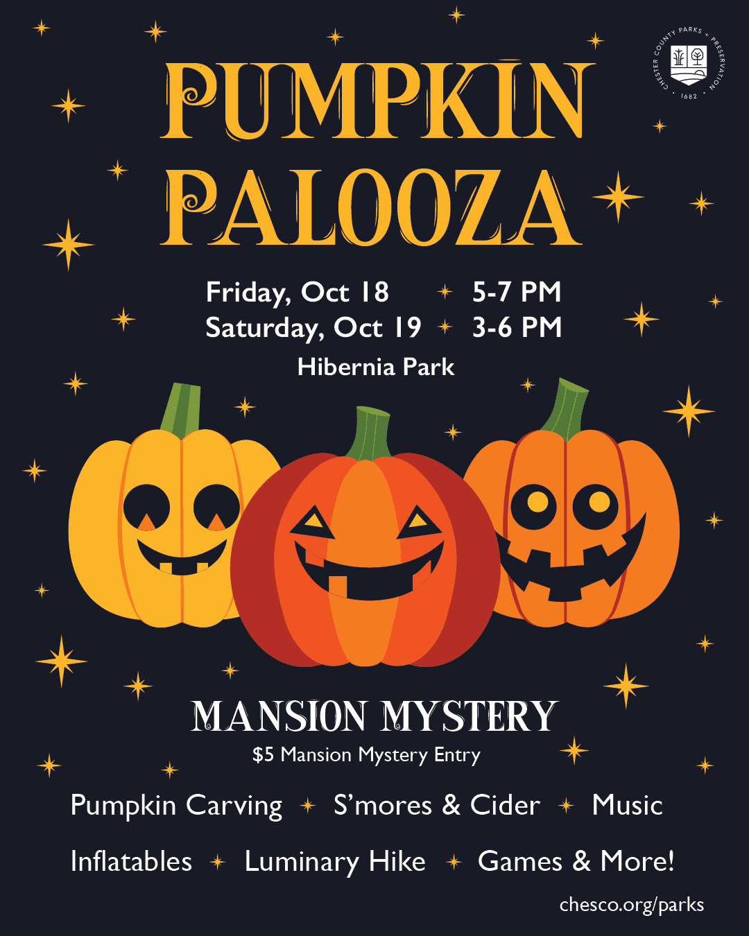 Pumkin Palooza at Hibernia Park - Oct 18th, 5pm-7pm; Oct 19th 3pm-6pm