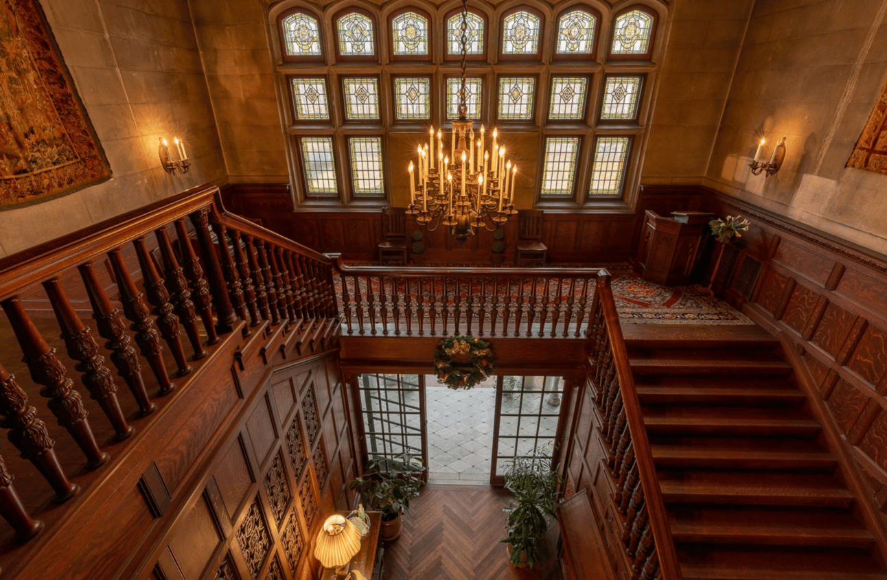 WEST CHESTER, PA — Greystone Hall, a grand English Renaissance-style mansion completed in 1907, is now on the market for $8.5 million. Located near West Chester, PA, this 44-acre estate features exquisite architecture, formal gardens, and a well-preserved interior that includes a library, game room, and bowling alley. Originally built for industrialist Philip M. Sharples, the mansion has since served as both a private residence and a wedding venue, remaining largely unchanged since its construction.