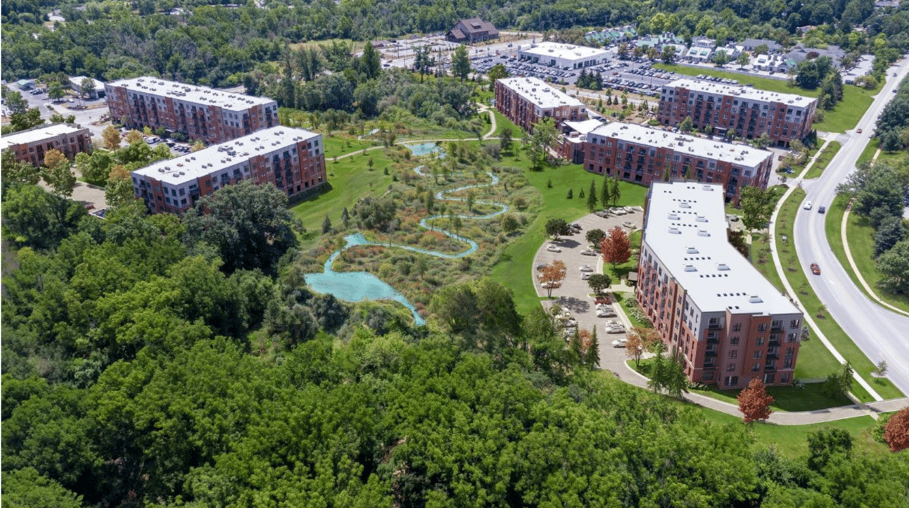 EXTON, PA — The Hankin Group’s Keva Flats project in Exton is redefining what it means to build in harmony with nature. Alongside the construction of Phase II of its luxury apartment complex, the company has embarked on a $2.4 million floodplain restoration project in the Lionville Run stream channel. This restoration, expected to conclude by the end of 2024, aims to improve stormwater management, enhance floodplain resilience, and restore native vegetation.