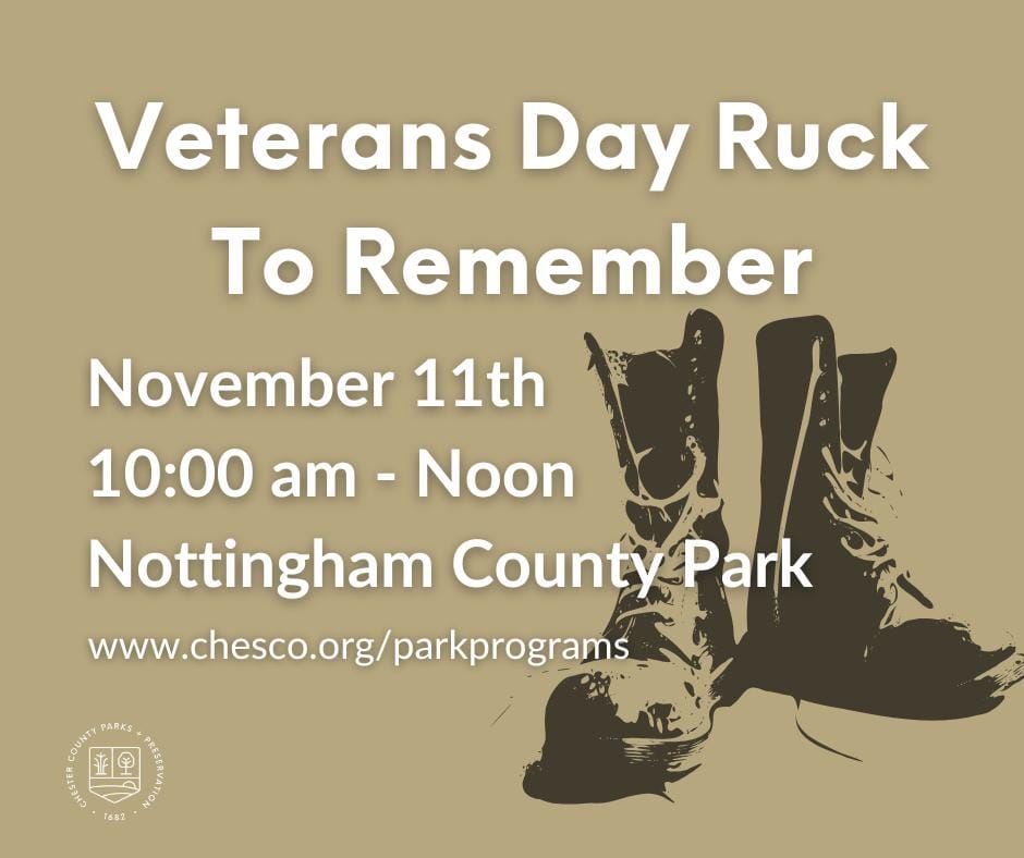 NOTTINGHAM, PA — On November 11, Ranger Goodeaux will lead a 4-mile hike through Nottingham County Park, offering participants a chance to learn about local military history while tackling some of the park’s more challenging terrain. The hike, which includes steep uphill sections, will reward participants with stunning views of the serpentine barrens, a rare ecological feature of the region. Designed to honor military servicemembers and their families, the event encourages participants to bring a rucksack and canteen, adding a symbolic element to the experience. This free event runs from 10 a.m. to noon and is open for registration.