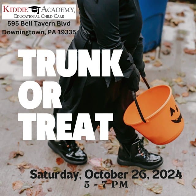 DOWNINGTOWN, PA — A trio of family-friendly Halloween events will take place on Saturday, October 26, 2024, across the area. Upper Uwchlan Township starts the celebrations with a Trunk-or-Treat at Hickory Park from 3:00 PM to 5:00 PM, featuring candy, activities, and local emergency services displays. Downingtown Area Chamber of Commerce will follow with a Trunk-or-Treat at Kiddie Academy from 5:00 PM to 7:00 PM. Rounding out the evening, Caln Township will host a Halloween Party at 241 Municipal Drive in Thorndale from 5:00 PM to 7:00 PM, including a costume contest, games, and a scavenger hunt. All events are free and open to the public.