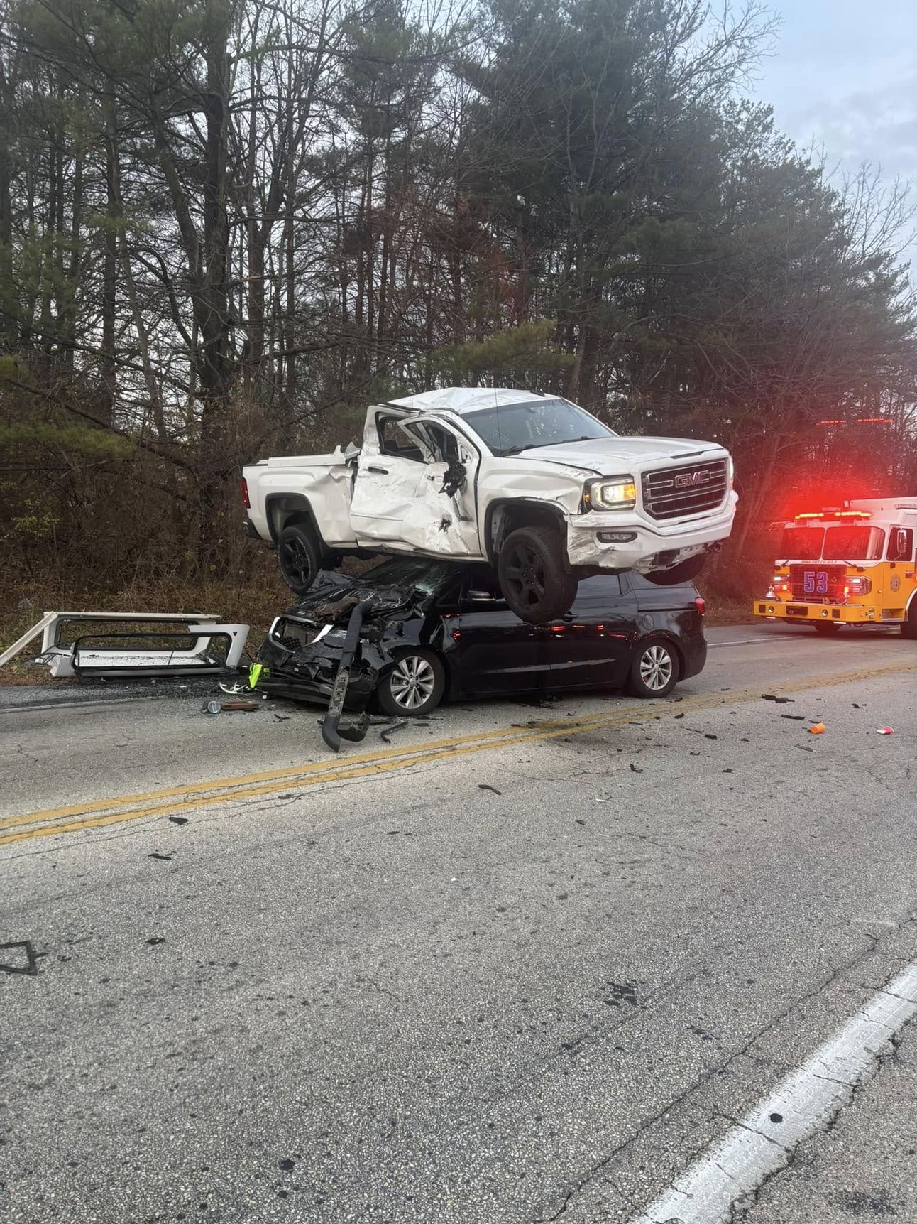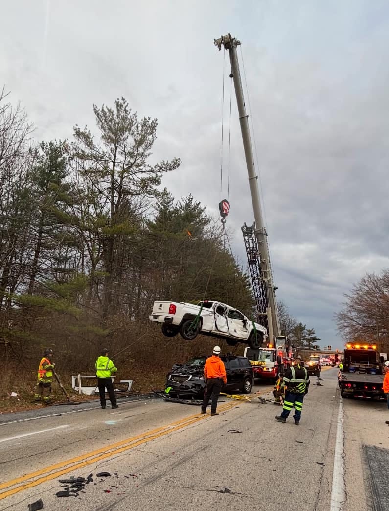 WEST CHESTER, PA — A multi-vehicle collision on Westtown Road in West Chester led to a striking sight: a pickup truck resting atop a minivan. Local authorities, who documented the scene, have not yet disclosed the events leading up to the incident or whether anyone was harmed. The cleanup was notable, as a crane crew, already en route to another location, arrived on the scene and assisted in removing the truck from the crushed minivan.