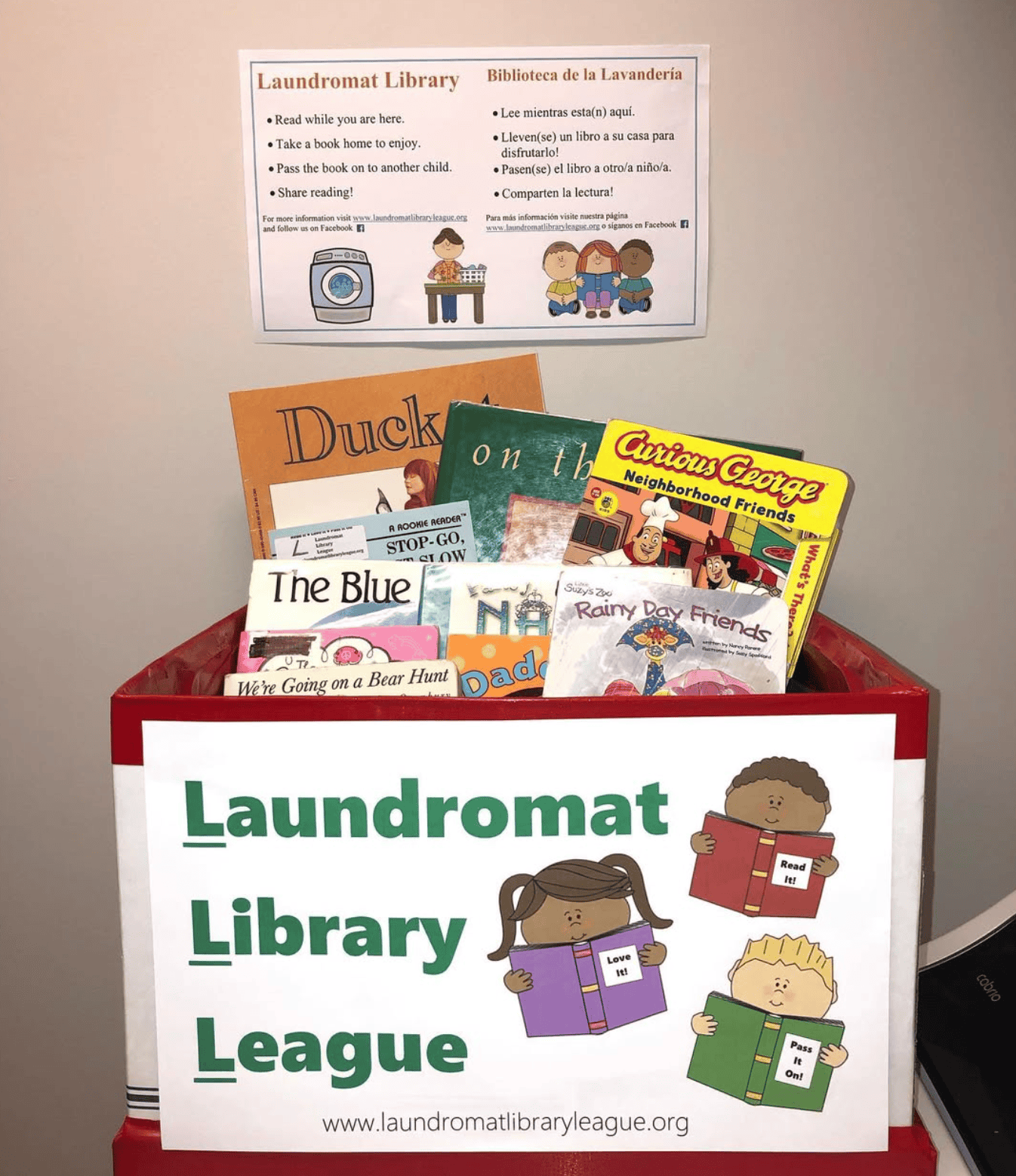 The nonprofit operates through 968 volunteers who refresh collections biweekly, funded by small grants and donations. More info online at https://www.laundromatlibraryleague.org/