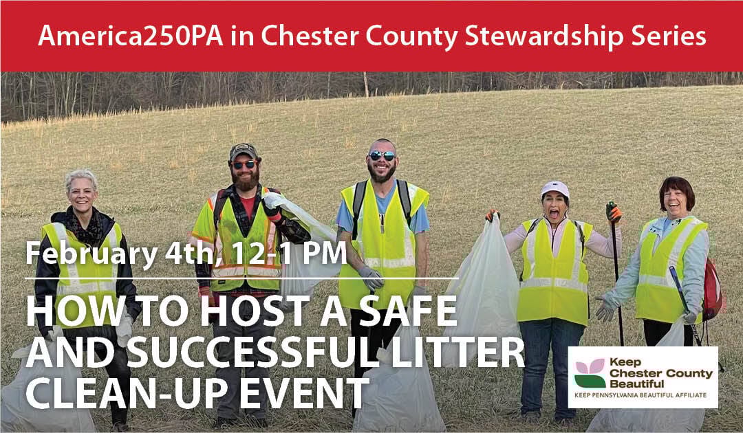 The workshop will be led by Beth Intoccia, founder of the Chester County Litter Lifters, who brings extensive experience organizing clean-up efforts throughout the county. The program will cover essential topics including an introduction to the America250 campaign in Chester County, registration is available online.